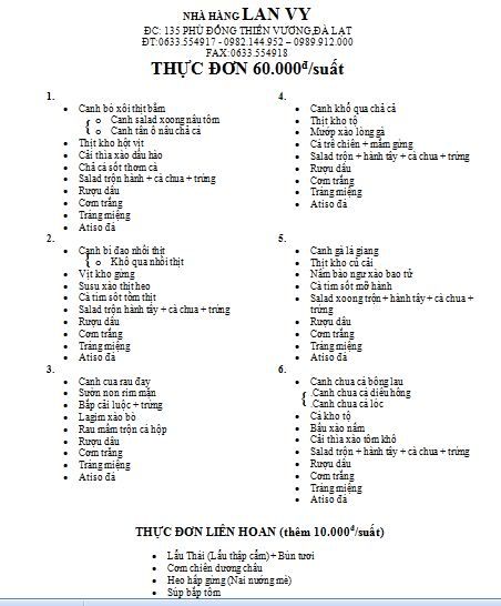 dịch vụ tại Nhà hàng - Khách sạn Lan Vy: